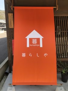 ノスタルジックな景色の中でパッと目を引く鮮やかな朱色の暖簾。