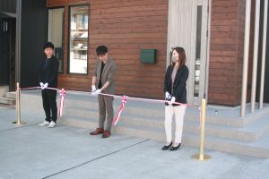 移転当日は、社員だけで、テープカットや代表挨拶を行う、簡単な式典を行いました。