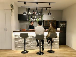 社員の交流のために作ったバーカウンターも早速大活躍。