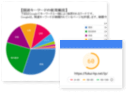 タイトル、ディスクリプションの最適化、共起語・キーワードの記載率・ページ表示速度など様々な視点からサイトを確認し内部修正書を作成します。